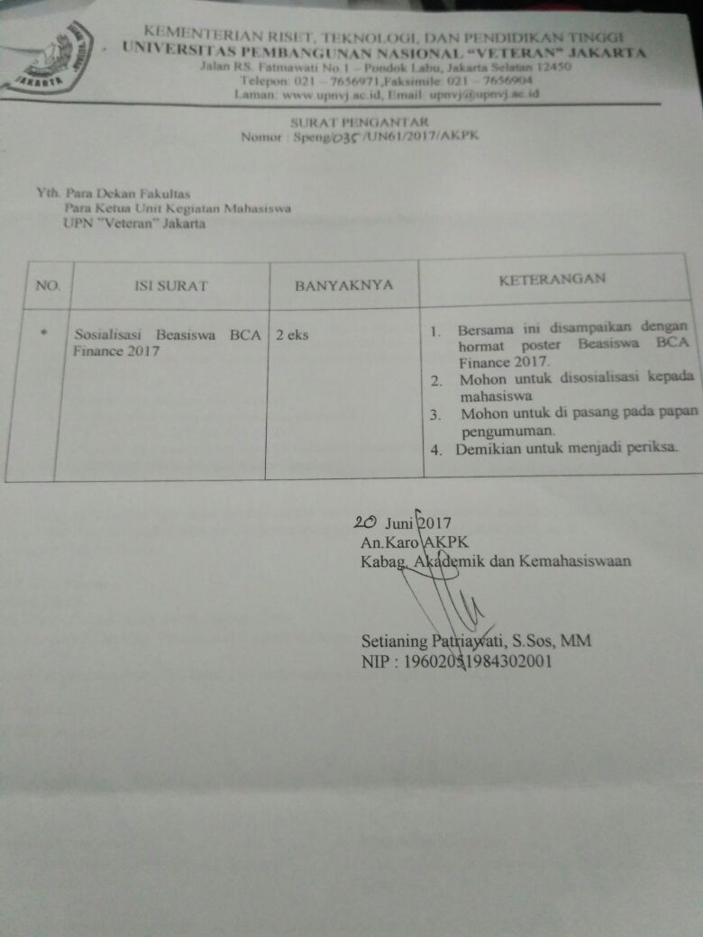 Informasi Bagi Seluruh Mahasiswa yang ingin mengikuti BEASISWA BCA pendaftaran dimulai dari tanggal 20 mei sd 31 Juli 2017 persyaratan tertera di lampiran