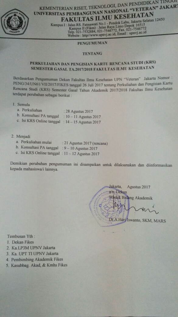 Pengumuman Untuk Seluruh Mahasiswa Fakultas Ilmu Kesehatan Untuk pengambilan kartu ujian sudah dapat diambil di bagian dikjar mulai hari ini tanggal 21 Maret 2017 sd 24 Maret 2017 dan...