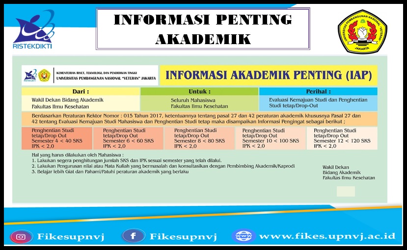 INFORMASI AKADEMIK PENTING (IAP) Dari : Untuk : Perihal : Wakil Dekan Bidang Akademik Fakultas Ilmu Kesehatan Seluruh Mahasiswa Fakultas Ilmu Kesehatan Evaluasi Kemajuan Studi dan Penghentian Studi Tetap/Dropout...