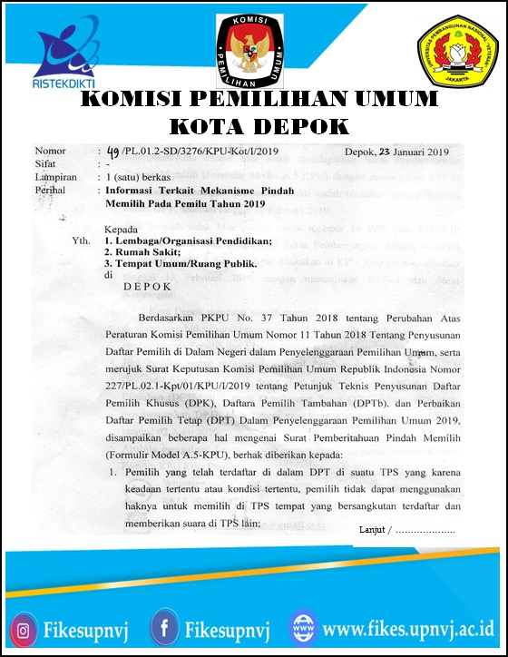 Fakultas Ilmu Kesehatan – Pengumuman Untuk seluruh Civitas Akademik Fakultas Ilmu Kesehatan Berdasarkan Nomor : 49/PL.01.2-SD/3276/KPU-Kot/I/2019 bagi seluruh mahasiswa /mahasiswi yang tidak pulang kampung maka bisa daftar untuk Pemilihan...