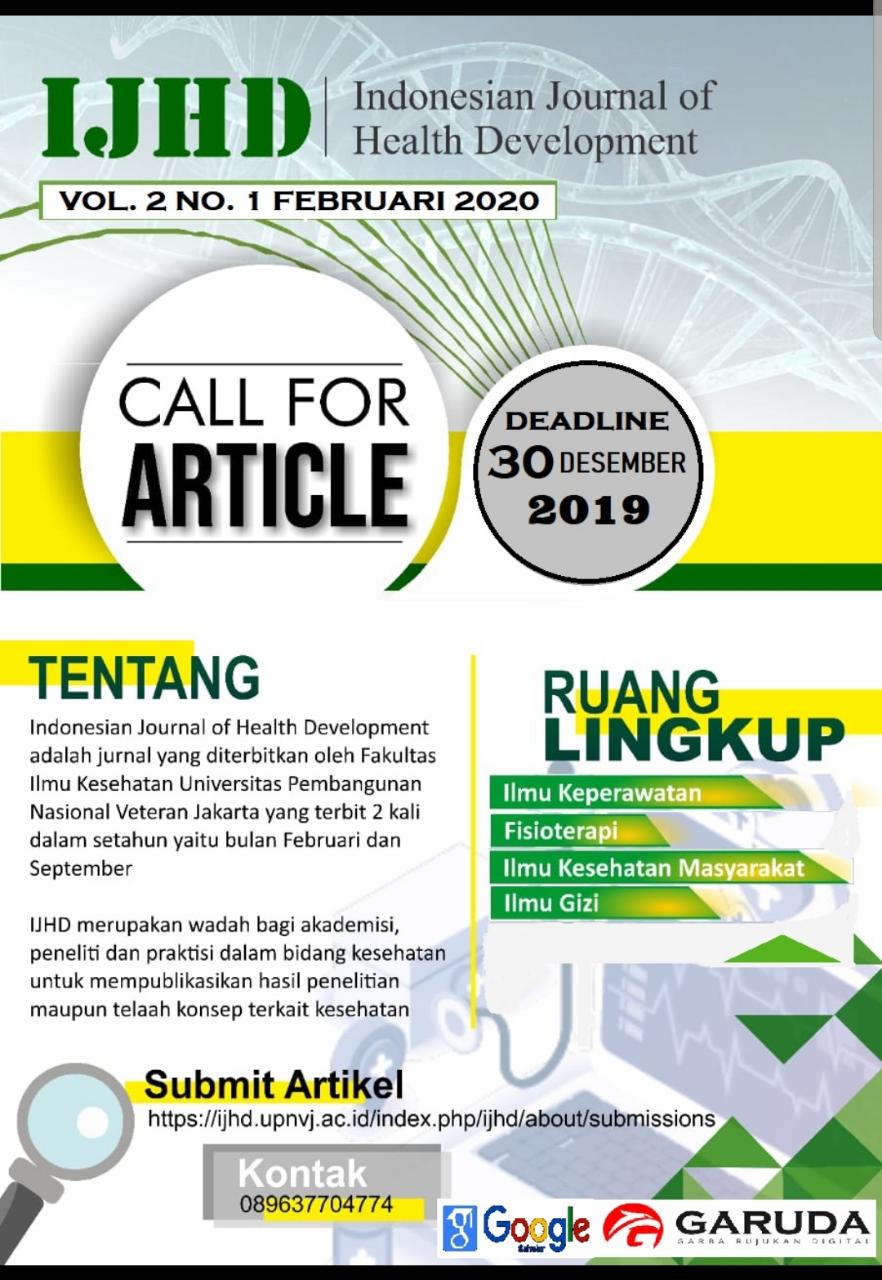 IJHD kembali membuka peluang bagi Penulis yang ingin mempublikasikan karya ilmiah nya khususnya bidang Keperawatan, Fisioterapi, Kesehatan Masyarakat, dan Gizi. Indonesian Journal of Health Development (IJHD) merupakan jurnal ilmiah...