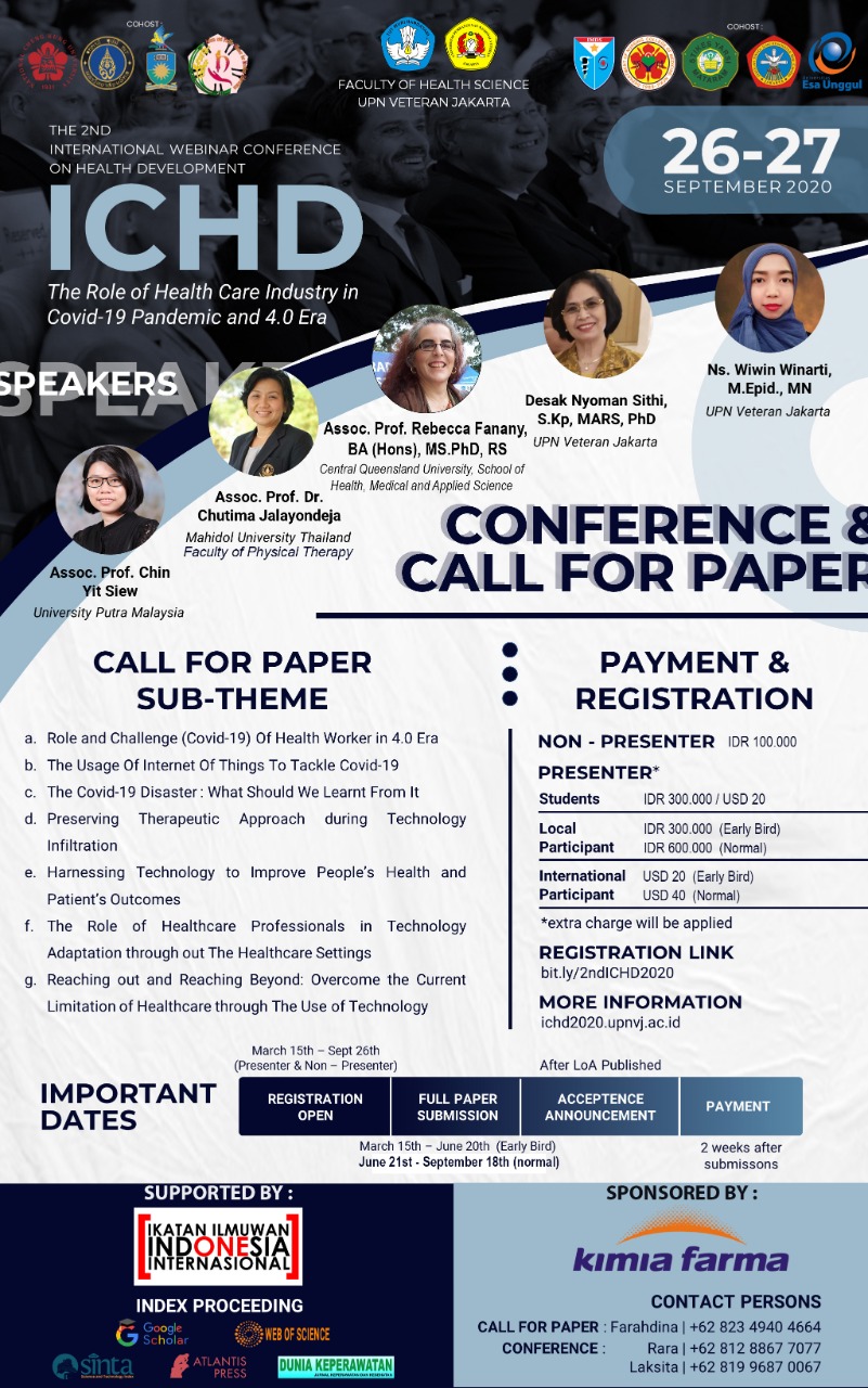 FIKES UPNVJ – The 2nd International Webinar Conference on Health Development (ICHD) is an international webinar conference organized by Faculty of Health Science, Universitas Pembangunan Nasional Veteran Jakarta. 🗓 Dates of...