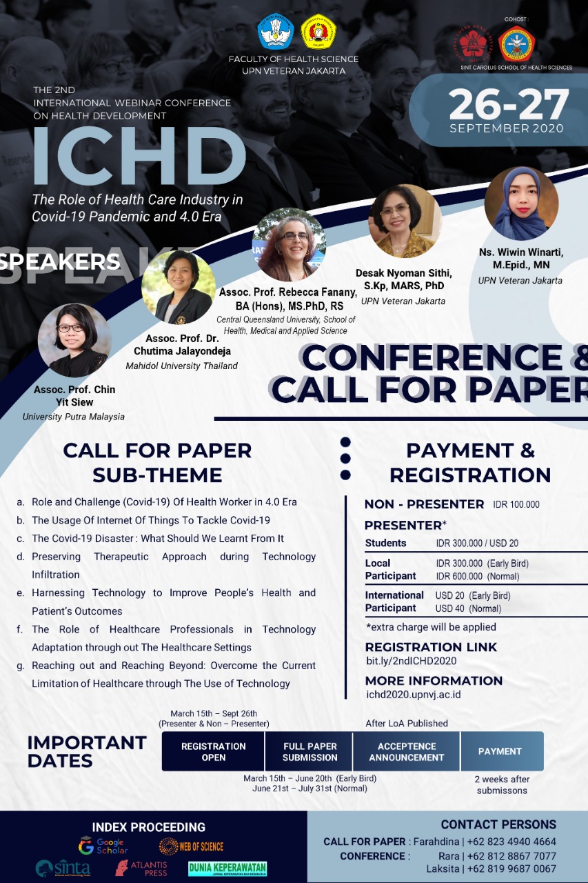 FIKES UPNVJ – The 2nd International Webinar Conference on Health Development (ICHD) is an international webinar conference organized by Faculty of Health Science, Universitas Pembangunan Nasional Veteran Jakarta. š£...