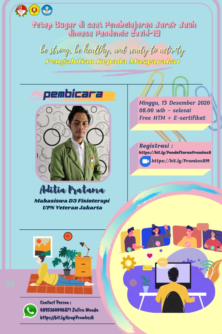 FIKES UPNVJ – Pada Sabtu 19 Desember 2020, Mahasiswa/i semester 3 Program Studi Fisioterapi Diploma Tiga Fakultas Ilmu Kesehatan Universitas Pembangunan Nasional Veteran Jakarta mengadakan kegiatan Promosi Kesehatan yang mengusung...