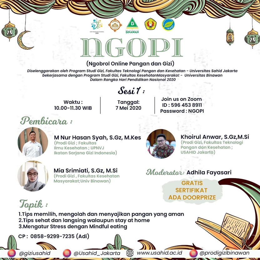 FIKES UPNVJ – Pada hari Sabtu tanggal 9 Mei 2020, Kepala Program Studi S1 Ilmu Gizi, Fakultas Ilmu Kesehatan Universitas Pembangunan Nasional Veteran Jakarta Taufik Maryusman, S.Gz, MPd, M.Gizi, menjadi salah...