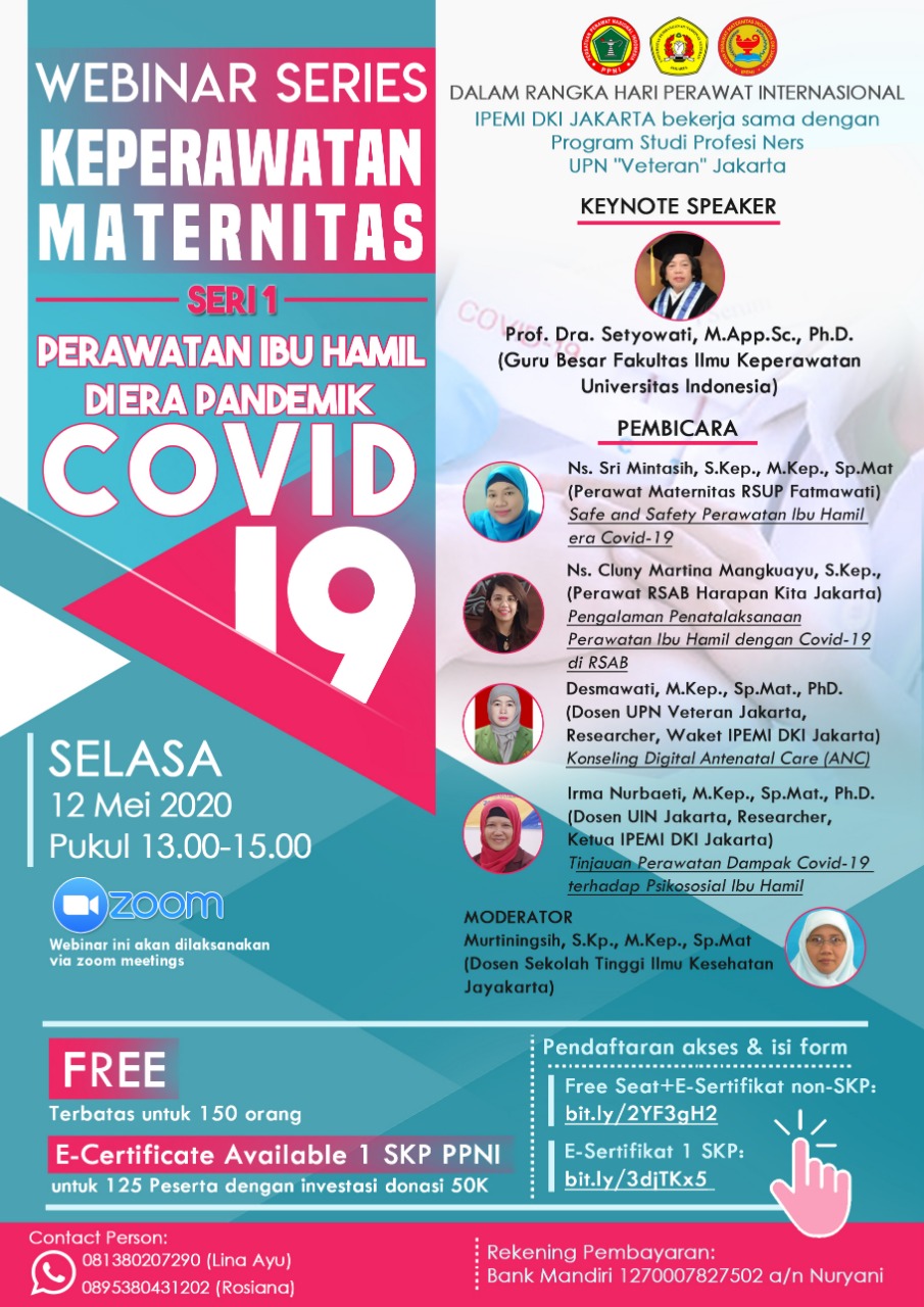FIKES UPNVJ – Dalam Rangka Hari Perawat Internasional Ikatan Perawat Maternitas Indonesia (IPEMI) Provinsi DKI bekerjasama dengan Jakarta Program Studi Profesi Ners Universitas Pembangunan Nasional Veteran Jakarta đź’« Proudly Present đź’« Webinar...