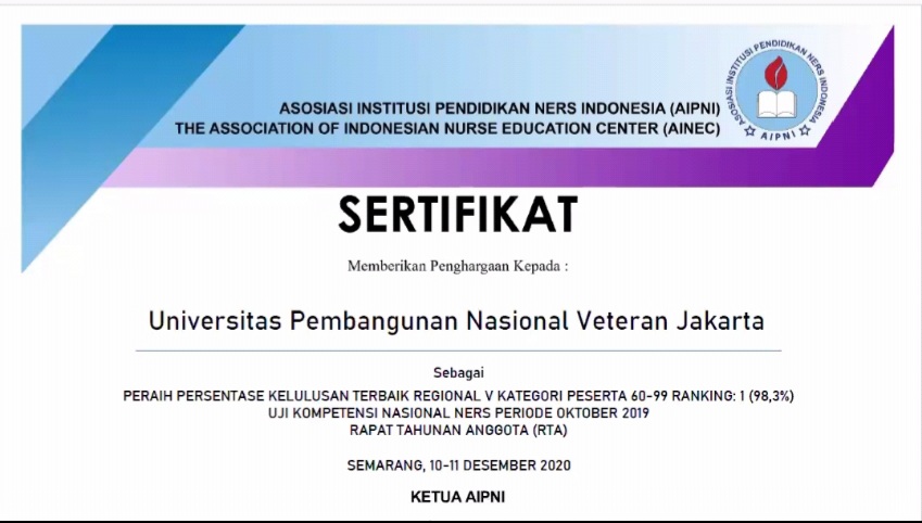 FIKES UPNVJ – Selamat Kepada Alumni Program Studi Profesi Ners yang meraih Persentase Kelulusan Terbaik Regional V Katergori Peserta 60 – 99 ranking 1 (98,3%) dalam Uji Kompetensi Nasional...