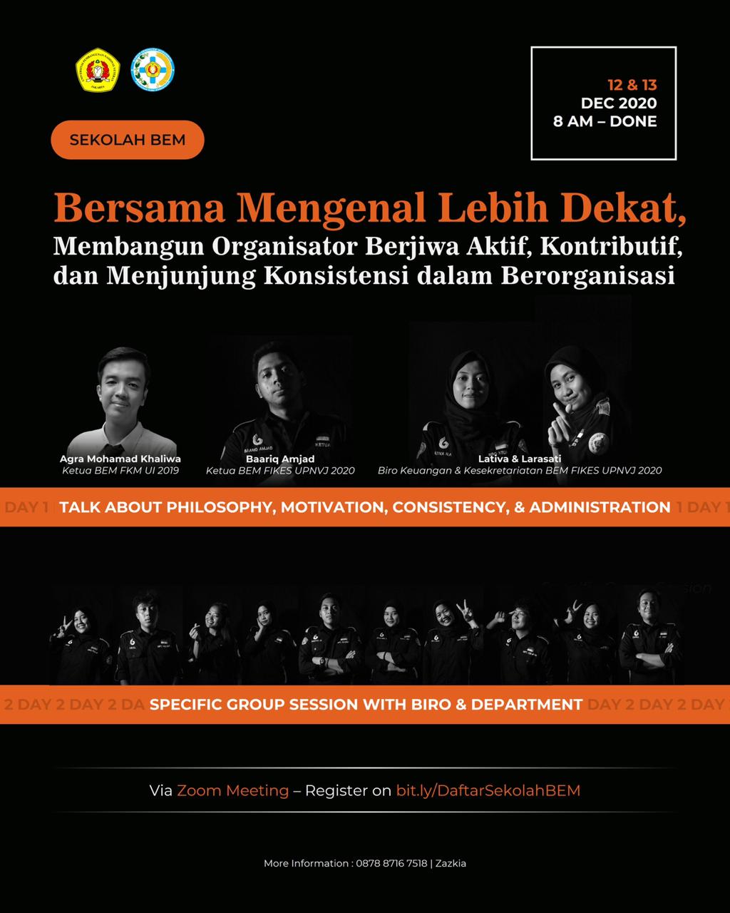 FIKES UPNVJ – Pada Sabtu dan Minggu, 12 dan 13 Desember 2020, BEM FIKES UPNVJ mengadakan kegiatan Sekolah BEM FIKES 2002 yang mengusung tema “Bersama mengenal lebih dekat, membangun...