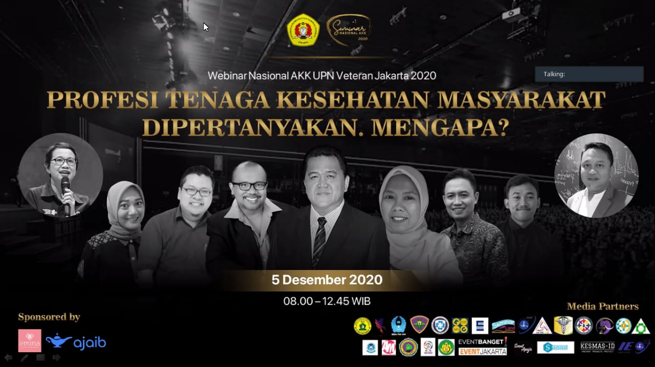 FIKES UPNVJ – Peminatan Administrasi Kebijakan Kesehatan Program Studi Kesehatan Masyarakat pada hari Sabtu, 5 Desember 2020 telah menyelenggarakan Webinar Nasional dengan judul “Profesi Tenaga Kesehatan Masyarakat Dipertanyakan. Mengapa?” kegiatan...
