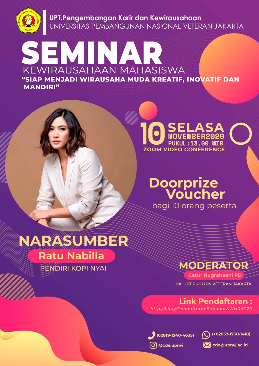 FIKES UPNVJ – Bagi Seluruh Mahasiswa Aktif Fakultas Ilmu Kesehatan Universitas Pembangunan Nasional Veteran Jakarta yang ingin bergabung dalam Seminar Kewirausahaan Mahasiswa dengan tema "Siap Menjadi Wirausaha Muda Kreatif, Inovatif...