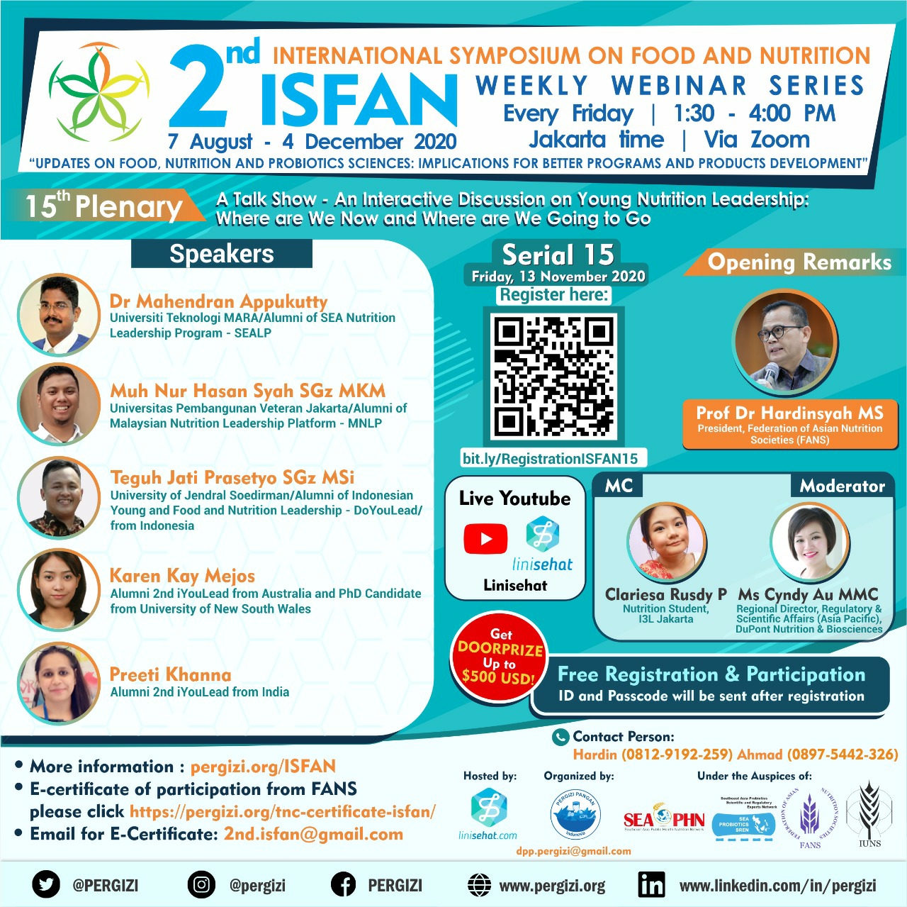 International Weekly Webinar Series. Every Friday 1.30 - 4.30 PM of Jakarta Time. From August to December 2020. Organised by Food and Nutrition Society of Indonesia (PERGIZI PANGAN Indonesia)....