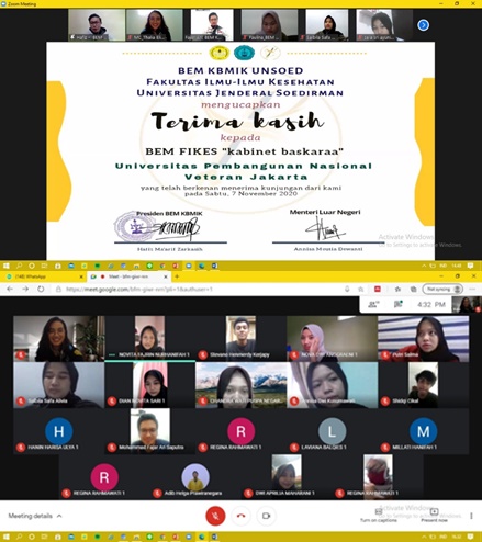 FIKES UPNVJ – Pada Hari Sabtu tanggal 07 November 2020, seluruh anggota BEM Fakultas Ilmu Kesehatan Universitas Pembangunan Nasional Veteran Jakarta mengikuti Kegiatan Studi Banding yang diadakan oleh BEM...