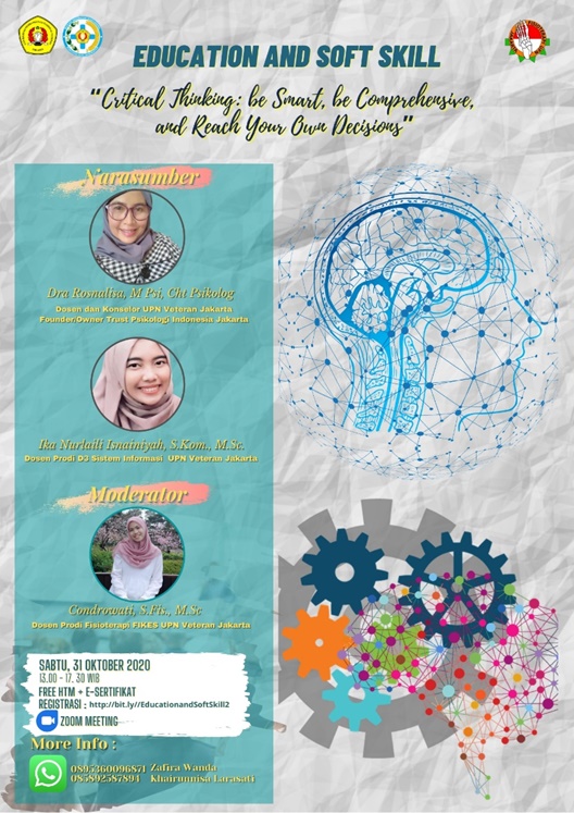 FIKES UPNVJ – Pada Minggu, 31 Oktober 2020 telah dilaksanakan rangkaian acara Education and Soft Skill #2 dengan tema “Critical Thinking: be Smart, be Comprehensive, and Reach Your Own Decisions”...