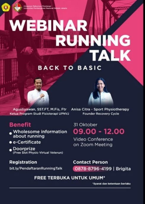 FIKES UPNVJ – Program Studi Fisioterapi Diploma III akan mempersembahkan Kegiatan Webinar Running Talk, Webinar Running Talk merupakan rangkaian dari Kegiatan Physio Virtual Veterun. Acara ini mengangkat tema Back to...