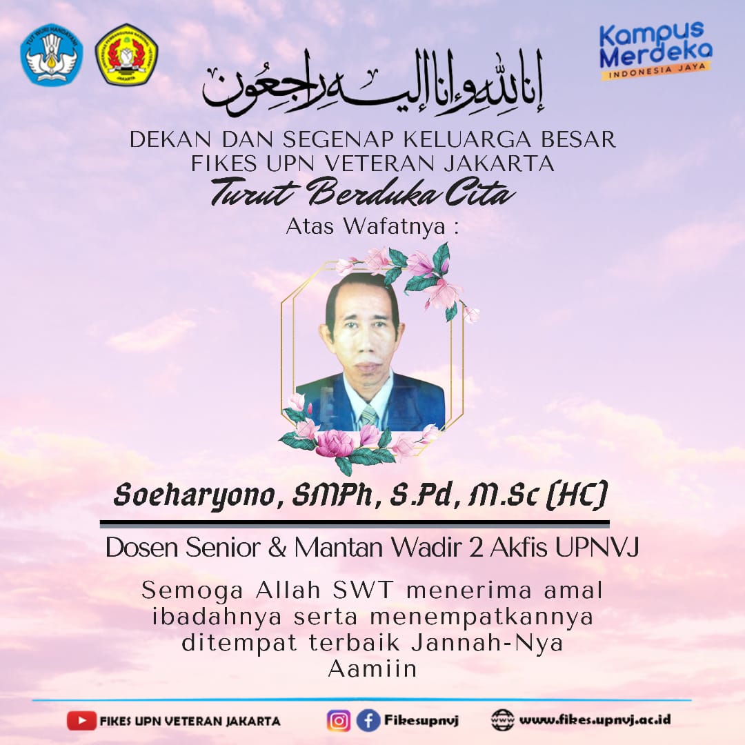 FIKES UPNVJ – Dekan dan Segenap Keluarga Besar Fakultas Ilmu Kesehatan Universitas Pembangunan Nasional Veteran Jakarta mengucapkan Turut Berduka Cita Atas Meninggalnya Bpk Soeharyono, SMPh S.Pd, M.Sc(HC) (Dosen senior...