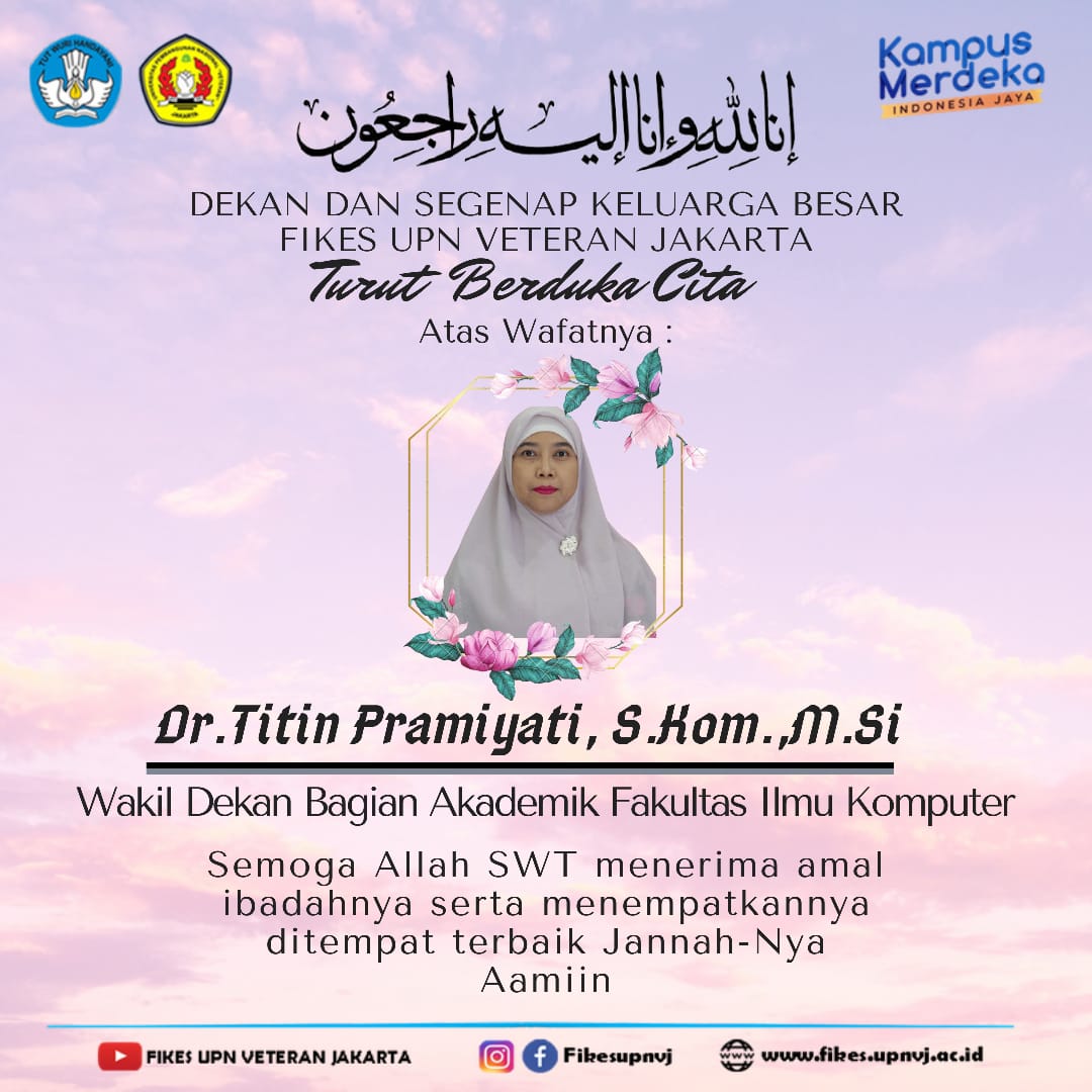 FIKES UPNVJ – Dekan dan Segenap Keluarga Besar Fakultas Ilmu Kesehatan Universitas Pembangunan Nasional Veteran Jakarta Turut berduka cita atas berpulang sahabat kita Dr.Titin Pramiyati, M.Si. (Wakil Dekan Bidang...