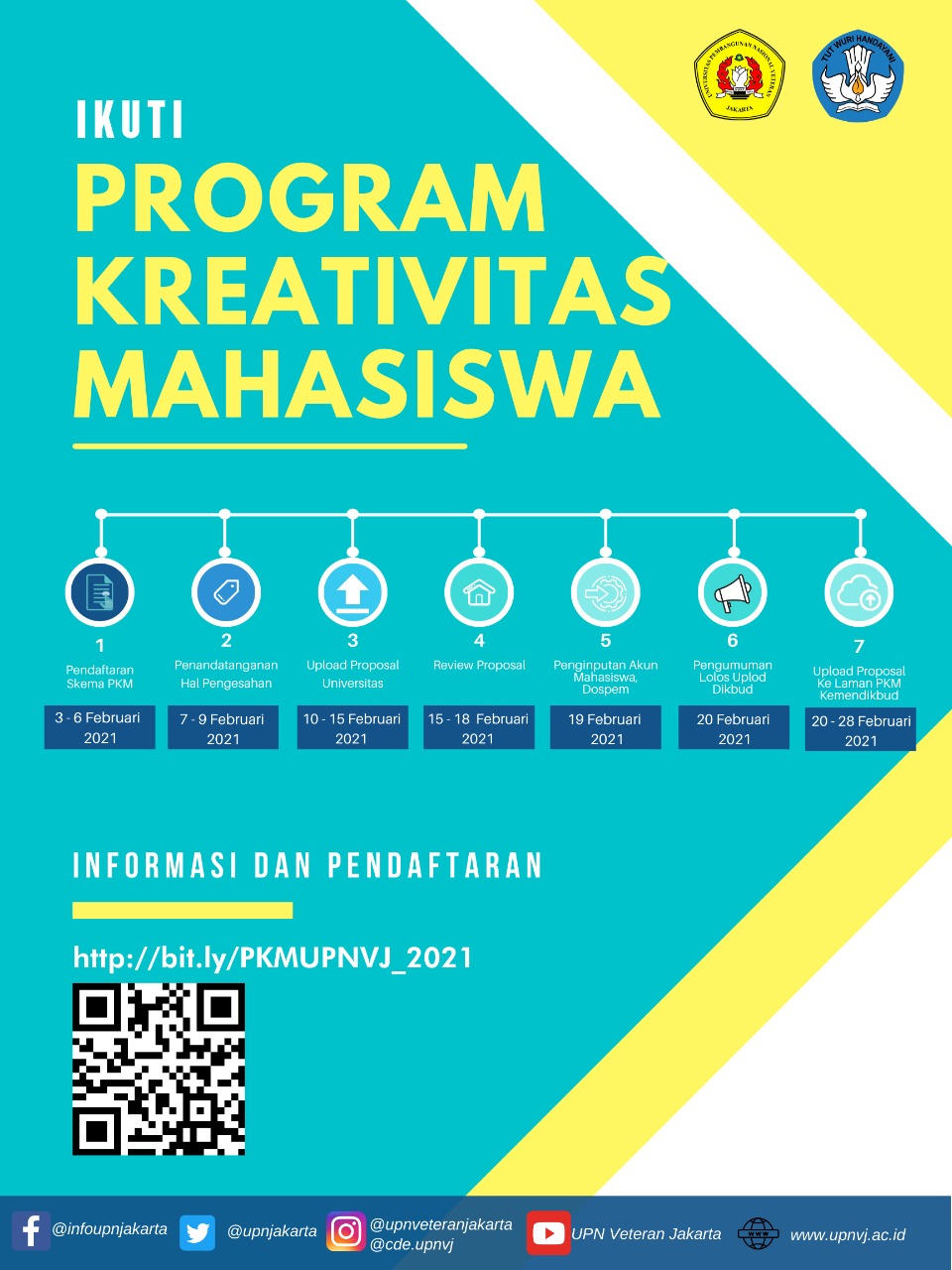 FIKES UPNVJ - Kepada seluruh mahasiswa aktif Fakultas Ilmu Kesehatan Universitas Pembangunan Nasional Veteran Jakarta yang ingin ikut berpatisipasi dalam Penawaran Program Kreativitas Mahasiswa Tahun 2021. Sebagai upaya memandu mahasiswa...
