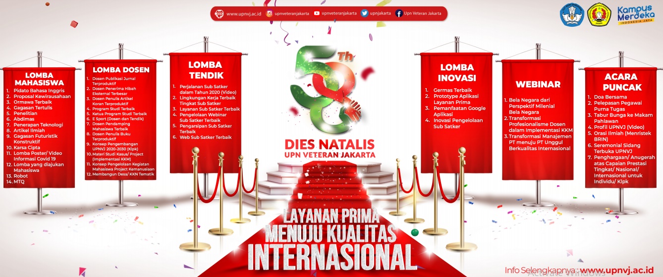 FIKES UPNVJ – Segenap Civitas Akademika Fakultas Ilmu Kesehatan Universitas Pembangunan Nasional Veteran Jakarta mengucapkan Selamat dan Sukses Dies Natalis Ke 58 Universitas Pembangunan Nasional Veteran Jakarta "Layanan Prima Menuju Kualitas Internasional....