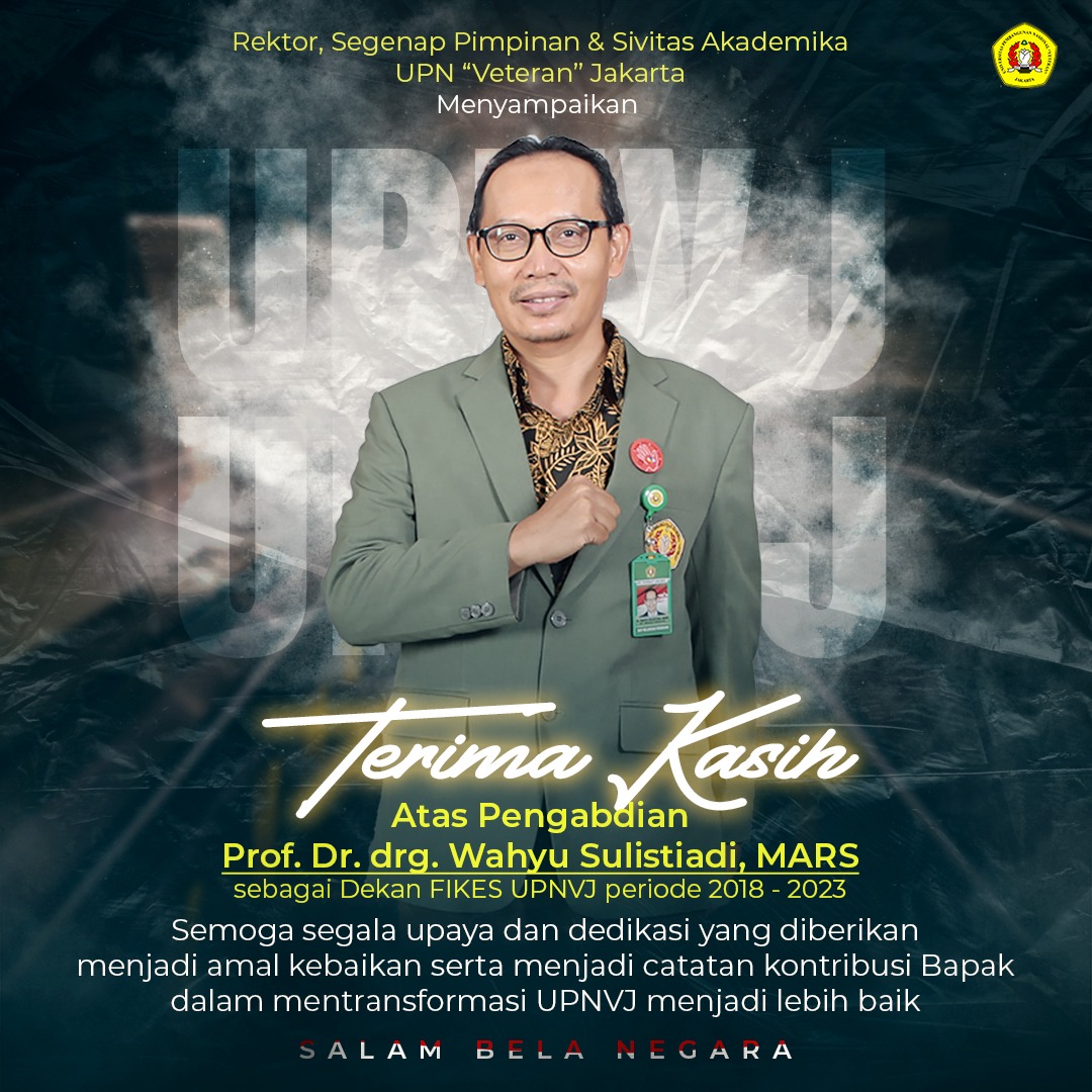 FIKES UPNVJ – Keluarga Besar Fakultas Ilmu Kesehatan UPN "Veteran" Mengucapakan Terima Kasih Atas Pengabdian Prof. Dr. drg. Wahyu Sulistiadi, MARS semoga segala upaya dan dedikasi yang diberikan menjadi amal...