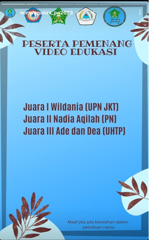 FIKES UPNVJ – Telah berlangsung kegiatan Lomba Ners Vaganza di Platform Sosial Media Instagram @nersvaganza_pn2023. Kegiatan berlangsung pada 01 Februari – 11 Maret 2023 yang diselenggarakan oleh HIMA PSIK...