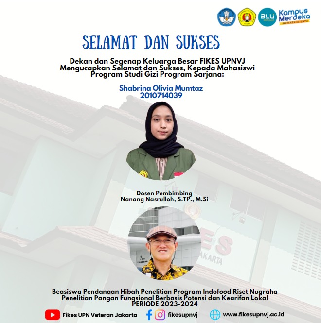 FIKES UPNVJ – Dekan dan Segenap Civitas Akademika Fakultas Ilmu Kesehatan UPN "Veteran" Jakarta Mengucapkan Selamat dan Sukses Kepada Mahasiswi Program Studi Gizi Program Sarjana Shabrina Olivia Mumtaz 2010714039 Dosen...