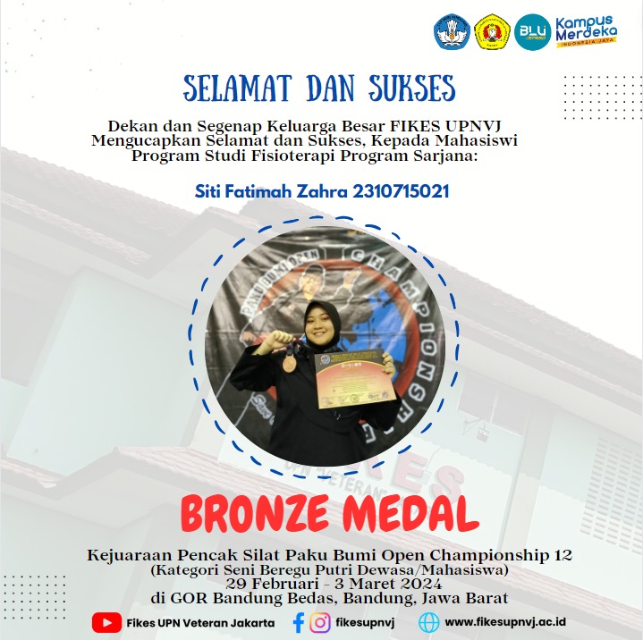 FIKES UPNVJ – Dekan dan Segenap Keluarga Besar Fakultas Ilmu Kesehatan UPN “Veteran” Jakarta Mengucapkan Selamat Kepada Mahasiswi Program Studi Fisioterapi Program Sarjana Siti Fatimah Zahra 2310715021 telah berhasil...