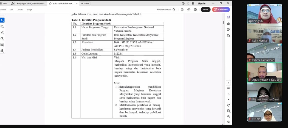 FIKES UPNVJ – pada Senin, 18 Maret 2024, pukul 13.00-16.30 telah melaksanakan kegiatan Tinjauan Kurikulum Program Studi Kesehatan Masyarakat Program Magister FIKES UPN “Veteran” Jakarta bersama Mahasiswa melalui platform zoom-meeting oleh tim...