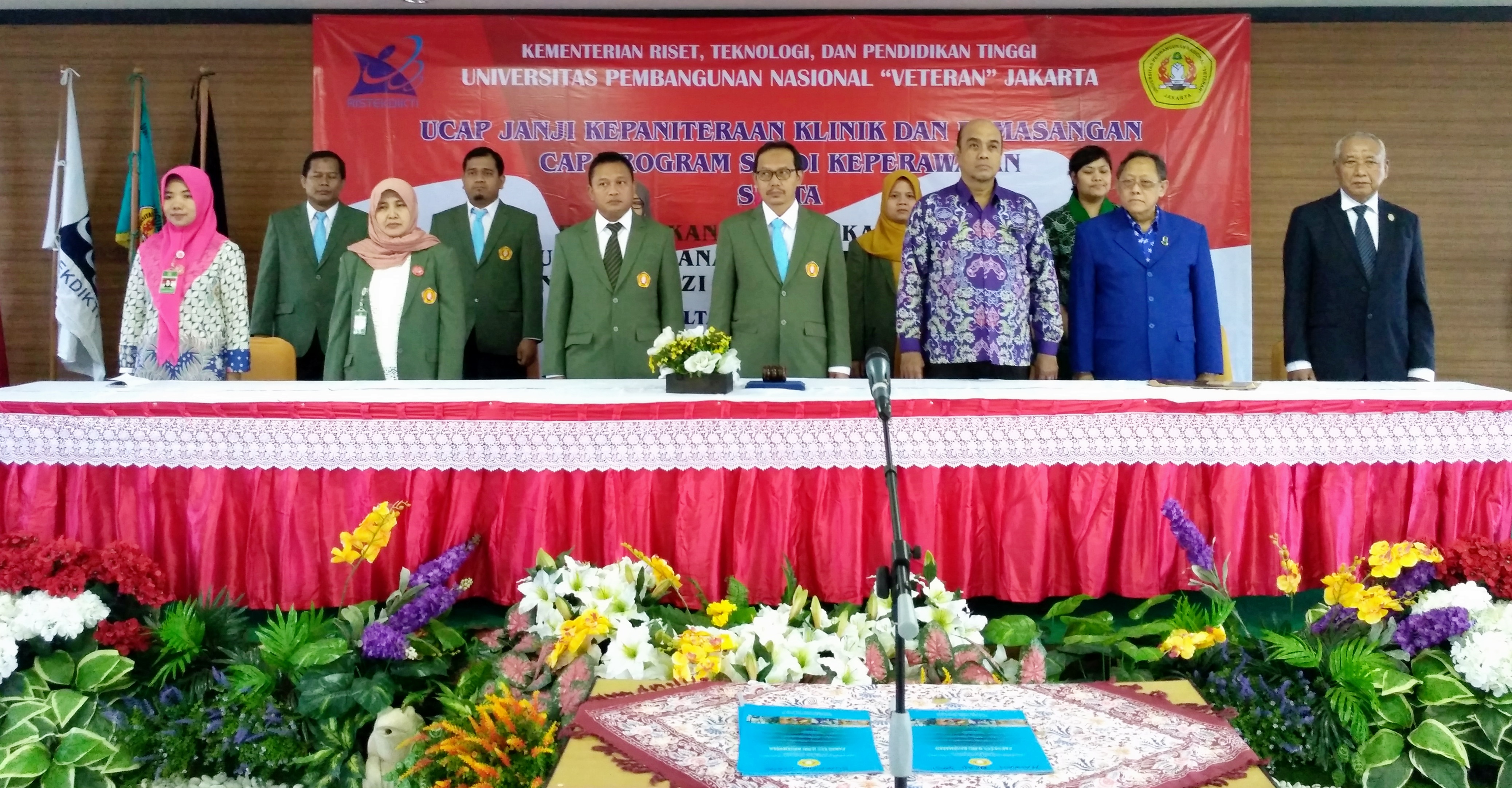 Fakultas Ilmu Kesehatan – Pada Hari Kamis tanggal 25 April 2019 Fakultas Ilmu Kesehatan Mengadakan Ucap Janji Kepaniteraan Klinik terdiri dari S1 Keperawatan dan D-III Keperawatan mahasiwa yang akan masuk kelahan praktek dan Angkat Sumpah adalah mahasiswa alumni yang telah lulus, Acara ini bertempat di Gedung B Fakultas Ilmu Kesehatan Limo, Ruang Tanah Airku Lantai 5. Mahasiswa Ucap Janji Kepaniteraan Klinik terdiri dari S1 Keperawatan 105 mahasiswa dan D-III Keperawatan 26 mahasiswa dan alumni terdiri dari S1 Kesehatan Masyarakat terdiri dari 2 mahasiswa ,S1 Ilmu Gizi 5 mahasiswa, dan D-III Fisioterapi 2 Mahasiswa. Yang hadir dalam Ucap Janji Kepaniteraan Klinik terdiri dari Rektor UPN Veteran Jakarta Dr. ERNA HERNAWATI, Ak, CPMA, CA, Kepala Biro Umum dan Keuangan Drs. Sugeng, Kepala Biro Akademik, Kemahasiswaan dan kerjasama yang diwakilkan oleh Bapak Mihrodi, dari Asosiasi Ikatan Asosiasi Kesehatan Masyarakat Indonsia Dr. Baequni, SKM. M.Kes, PERSAGI, Ikatan Fisioterapi Indonesia yang diwakilkan oleh Bapak Suroso, Civitas Fakultas Ilmu Kesehatan Universitas Pembangunan Nasional "Veteran" Jakarta Mahasiswa S1 Keperawatan, D-III Keperawatan mahasiwa yang akan masuk kelahan praktek dan Angkat Sumpah adalah mahasiswa alumni yang telah lulus yaitu Program S1 Kesehatan Masyarakat, S1 Ilmu Gizi dan D-III Fisioterapi.