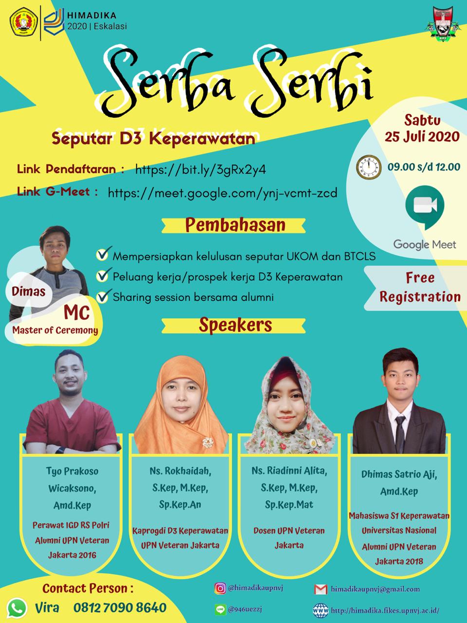 FIKES UPNVJ – SERBA-SERBI dengan konsep yang lebih menarik loh! Apa sih Serba-Serbi itu? acara serba serbi ini adalah rangkaian acara sharing sesama D3 Keperawatan Universitas Pembangunan Nasional Veteran Jakarta dan juga dengan para Alumni loh, serba serbi kali ini akan membahas seputar:
