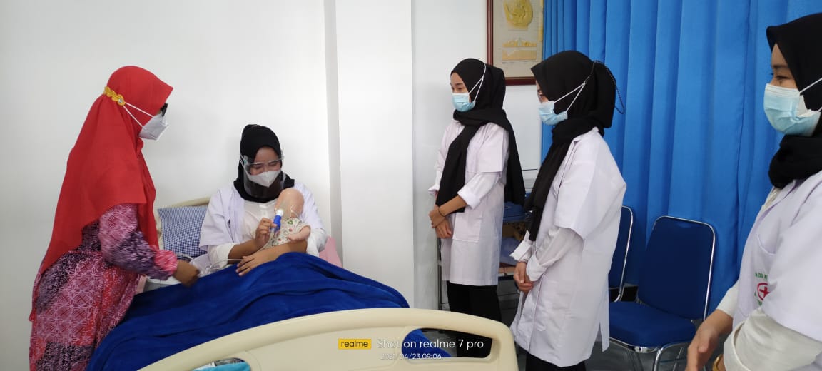 Kegiatan Praktikum ini didampingi oleh Dosen Pengampu Matakuliah Keperawatan Anak yaitu Ns. Rokhaidah, S.Kep, M.Kep, Sp. Kep, An materi yang disampaikan adalah prosedur blue light terapi, perawatan bayi dalam inkubator, Imunisasi dan Terapi Nebulizer.
