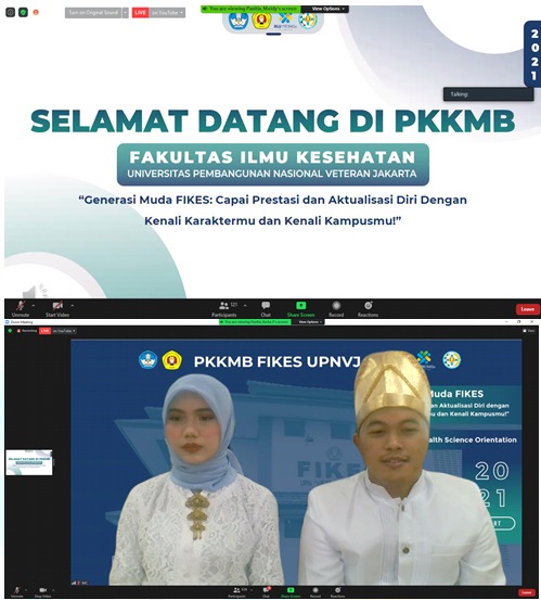 FIKES UPNVJ - Pada hari Jumat - Sabtu, 13 dan 14 Agustus 2021 telah dilaksanakannya kegiatan PKKMB (Pengenalan Kehidupan Kampus Bagi Mahasiswa Baru) Fakultas Ilmu Kesehatan UPN Veteran Jakarta dengan tema dari kegiatan ini yaitu “Generasi Muda FIKES: Capai Prestasi dan Aktualisasi Diri dengan Kenali Karaktermu dan Kenali Kampusmu” yang merupakan program kerja dari Biro Pengendalian Sumber Daya Mahasiswa (PSDM) BEM Fakultas Ilmu Kesehatan UPN Veteran Jakarta Periode 2021/2022. Kegiatan ini berjalan dengan lancar dimulai dari pembukaan oleh pembawa acara (MC) yaitu saudari Vionita Apriliana dan saudara Eduardus Sultan selaku mahasiswa dari Unit Kegiatan Mahasiswa Master of Ceremony (MC) UPN Veteran Jakarta.