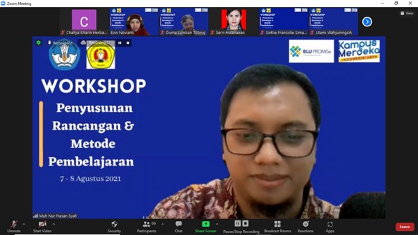 FIKES UPNVJ - Perangkat dan metode pembelajaran memiliki peranan yang sangat penting dalam dunia Pendidikan, agar proses pembelajaran dapat berjalan menjadi lebih baik dan maksimal. Unit Pengembangan Akademik Fakultas Ilmu Kesehatan Universitas Pembangunan Nasional Veteran Jakarta (UPA FIKES UPNVJ) memberikan perhatian atas peningkatan mutu kualitas Pendidikan di perguruan tinggi melalui Workshop Penyusunan Rancangan Pembelajaran dan Metode Pembelajaran yang dilaksanakan pada hari Sabtu, 7 Agustus 2021 dan Minggu, 8 Agustus 2021. Workshop ini mengundang Ibu Dr. Tuti Nuraini, S.Kp., M.Biomed selaku Ketua Bidang Kurikulum AIPNI Regional V. Workshop ini diharapkan dapat menjadi salah satu wadah bagi dosen dalam menyususun RPS dan termasuk Metode dalam pembelajarannya guna mempersiapkan perkuliahan Ganjil TA 2021/2022. Kegiatan ini berlangsung dengan menggunakan Zoom Metting Peserta yang hadir sebanyak 68 Orang.