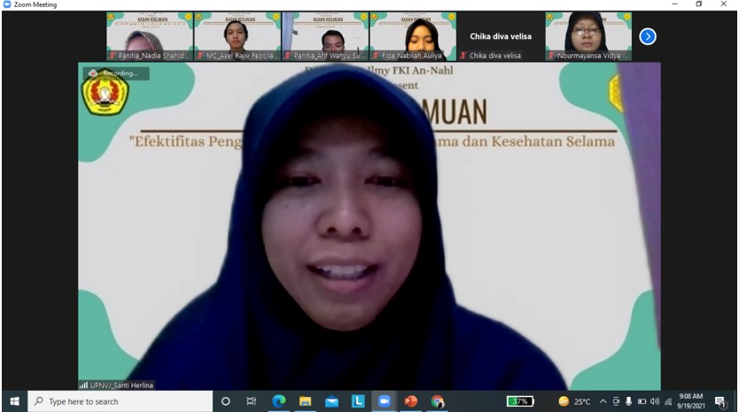 FIKES UPNVJ – Kajian Keilmuan FKI AN-NAHL UPNV Jakarta merupakan acara kajian sharing keilmuan yang bertemakan “Optimalisasi Penggunaan Gadget Terhadap Kesehatan Mata Selama Pandemi Covid-19” dengan sub tema yaitu Handphone mengalihkan interaksiku dengan Allah SWT dan Optimalisasi Penggunaan Gadget Terhadap Kesehatan Mata Selama pandemi Covid-19 yang dilaksanakan oleh LDF FKI AN-NAHL UPNV Jakarta pada Sabtu, 19 September 2021 pukul 08.45 – 12.00 WIB dan diikuti oleh masyarakat umum yang berasal dari kategori pelajar, mahasiswa dan umum melalui platform zoom meeting. Kajian keilmuan menghadirkan 2 pembicara yaitu Ustadz Abu Takeru dan Ns. Santi Herlina, S.Kep, M.Kep, Sp. Kep. MB. Latar belakang diadakan acara kajian keilmuan ini adalah Handphone ini sebenarnya sangat bermanfaat untuk memudahkan segala pekerjaan dan membantu kita terhubung dengan orang lain. Namun, bila kita terlalu bergantung pada handphone akan membuat kita lalai dan melupakan tugas kita sebagai manusia. Sudah sepatutnya, kita sebagai hamba Allah mengingat penciptaan manusia di muka bumi adalah untuk beribadah kepada Allah. Ditambah lagi, paparan sinar biru dari gadget ini ternyata dapat berdampak negatif bagi kesehatan mata.