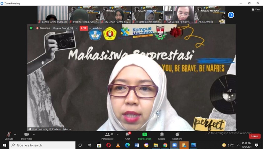 FIKES UPNVJ – Pada hari Sabtu, 02 Oktober 2021 telah berlangsung kegiatan Pemilihan Mahasiswa Berprestasi Himpunan Mahasiswa Keperawatan Program Diploma Tiga UPN Veteran Jakarta dengan tema “Be You, Be Brave, Be Mapres”. Kegiatan ini dilakukan via online melalui zoom meeting dan live streaming di YouTube Channel Himadika UPNVJ. Jumlah peserta yang hadir dalam via zoom meeting yaitu sekitar 45 peserta. Kegiatan Pemilihan Mahasiswa Berprestasi ini didukung oleh Fakultas Ilmu Kesehatan UPN Veteran Jakarta, Kepala Program Studi Keperawatan Program Diploma Tiga yaitu Ns. Rokhaidah, M.Kep., Sp.Kep.An, dan jajaran dosen lainnya, serta beberapa mahasiswa/siswi D3 Keperawatan.