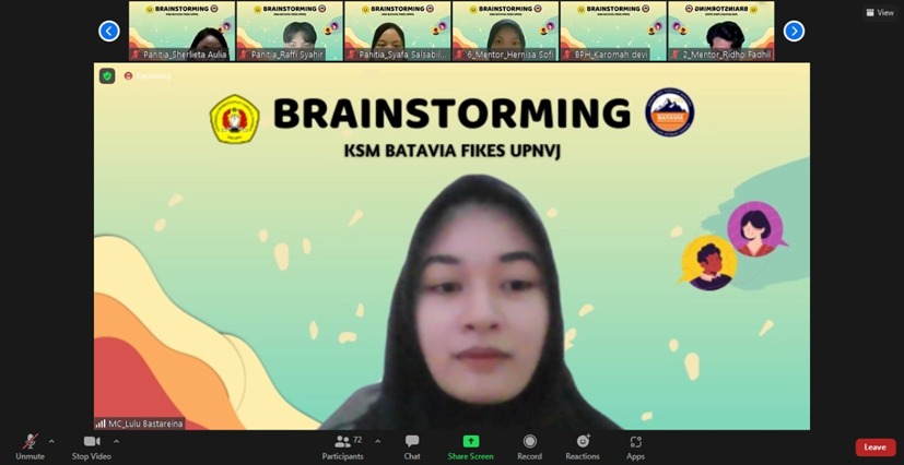 FIKES UPNVJ – Brainstorming merupakan salah satu proker divisi PSDM KSM BATAVIA 2022 yang diselenggarakan pada hari Sabtu, 16 April pukul 13.00 WIB – selesai bertempat di platform zoom meeting. Acara ini diselenggarakan dengan mengusung tema “Strategi Problem Solving melalui Manajemen Kebencanaan”. Peserta acara Brainstorming ini merupakan anggota dan volunteer KSM Batavia 2022.