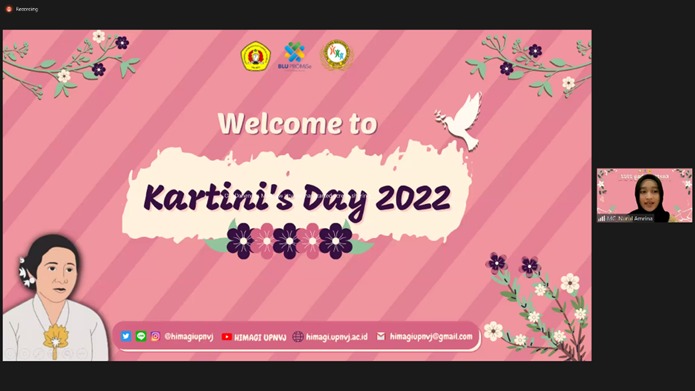 FIKES UPNVJ – Sabtu, 23 April 2022 – Dengan rasa bangga, Himpunan Mahasiswa Gizi (HIMAGI) Fakultas Ilmu Kesehatan Universitas Pembangunan Nasional Veteran Jakarta telah mengadakan serangkaian kegiatan Kartini’s Day 2022 dengan tema “Self-awareness for a Healthier Lifestyle will Lead You to Find Your True Self-love”. Kartini’s Day 2022 merupakan suatu kegiatan untuk merayakan hari Kartini serta meningkatkan keahlian mahasiswa dalam bidang non-akademik yang diselenggarakan oleh Himpunan Mahasiswa Gizi (HIMAGI) Periode 2021/2022 dan merupakan program kerja dari Divisi Kreasor yang diselenggarakan pada tanggal 23 April 2022 secara daring melalui platform Zoom Meeting.