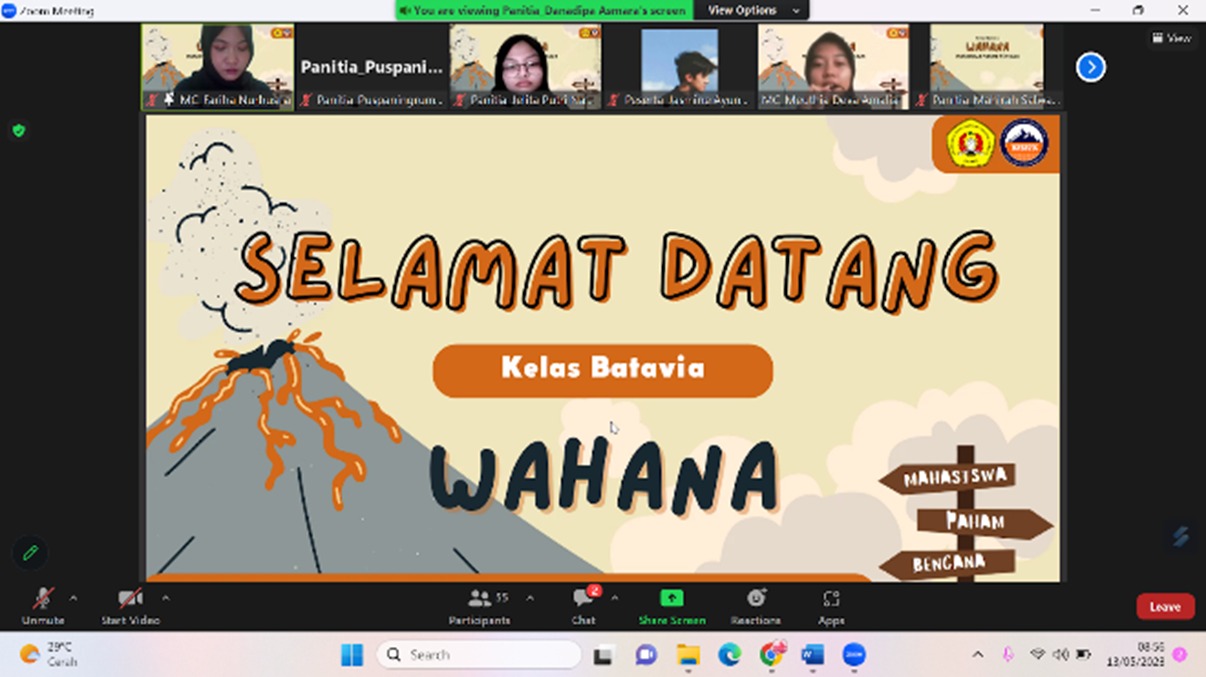 FIKES UPNVJ – Kelas Batavia 2023 merupakan salah satu program kerja dari KSM Batavia yang bertujuan untuk meningkatkan pengetahuan dan keterampilan seluruh anggota KSM BATAVIA mengenai tanggap darurat bencana secara umum maupun khusus sesuai program studi sehingga lebih siap menjalankan perannya di lokasi yang rawan atau sedang terjadi bencana mencakup prabencana, saat bencana, dan pascabencana. Kelas Batavia dilaksanakan pada Maret – September 2023 pada hari Sabtu dengan 8 pertemuan. Untuk pertemuan ke-empat Kelas Batavia dilaksanakan secara online pada Sabtu, 13 Mei 2023. Acara ini dihadiri oleh 60 peserta yang terlihat antusias mengikuti Kelas Batavia kali ini. Acara ini berlangsung selama 2 jam 15 menit dari pukul 08.45 – 11.00 dan dimulai dengan pengisian presensi, pretest, pembukaan dan pembacaan tata tertib, menyanyikan lagu Indonesia Raya dan MARS Bela Negara.