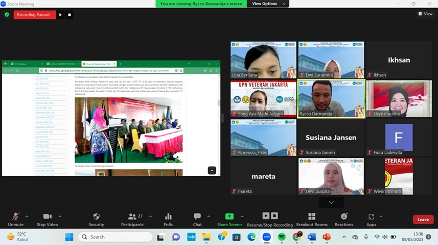 FIKES UPNVJ – Selasa 9 Mei 2023, pukul 13.00 WIB s.d 15.00 WIB, Tim Pelaksana Kegiatan Ucap Janji Kepaniteraan Klinik dan Pemasangan Cap Program Studi Keperawatan Program Sarjana dan Diploma Tiga Fakultas Ilmu Kesehatan UPN “Veteran” Jakarta Tahun 2023 telah melaksanakan rapat persiapan. Rapat dipimpin oleh Ns. Lina Berliana Togatorop,S.Kep.,M.Kep selaku Ketua Panitia. Rapat dihadiri oleh Ketua Jurusan Ns. Wiwin Winarti,M.Epid.,MN, Kepala Program Studi Keperawatan Program Sarjana Ns. Fiora Ladesvita, M.Kep.,Sp.Kep.MB, Kepala Program Studi Keperawatan Diploma Tiga Ns. Laksita Barbara, S.Kep.,M.N, Kepala Program Studi Profesi Ners Ns. Dora Samaria, M.Kep, dan seluruh tim pelaksana kegiatan.