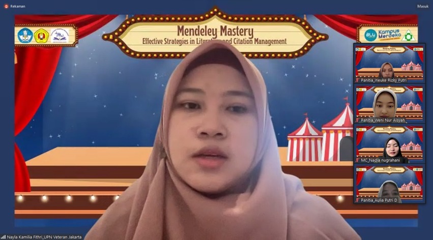 FIKES UPNVJ – Pelaksanaan kegiatan Workshop Mendeley 2024 dalam rangka pemenuhan tugas project workshop aplikasi reference manager Mata Kuliah Penulisan Ilmiah telah diselenggarakan pada hari Sabtu, 20 April 2024 secara online melalui platform Zoom Meeting dari pukul 08.00 sampai 12.25 WIB. Kegiatan Workshop Mendeley 2024 mengangkat tema “Mendeley Mastery: Effective Strategies in Literature and Citation Management”. Tujuan kegiatan ini adalah untuk meningkatkan kemampuan mahasiswa aktif Program Studi Kesehatan Masyarakat Program Sarjana UPN “Veteran” Jakarta dalam menggunakan aplikasi Reference Manager Mendeley. Adapun sasaran dari kegiatan ini adalah seluruh mahasiswa aktif Program Studi Kesehatan Masyarakat Program Sarjana UPN “Veteran” Jakarta dan masyarakat umum yang dihadiri oleh 201 peserta.