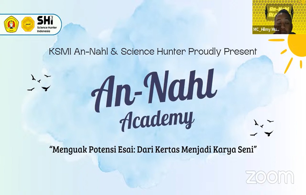 Kegiatan An-Nahl Academy 1 dilaksanakan pada Sabtu, 08 Juni 2024 secara daring melalui platform Zoom Meeting. Kegiatan ini dihadiri oleh 40 peserta yang terdiri dari pembina KSMI An-Nahl Bu Ns. Nourmayansa Vidya Anggraini, M.Kep., Sp.Kep.Kom., kader KSMI An-Nahl, LDF dan LDK Uswah UPN "Veteran" Jakarta, Mahasiswa/Mahasiswi UPN “Veteran” Jakarta, serta masyarakat umum. Kegiatan ini berlangsung selama 3 jam 45 menit yang diawali dengan pengisian presensi dan pretest oleh peserta serta pembukaan acara oleh MC, pemutaran lagu Indonesia Raya dan Mars Bela Negara, pembacaan ayat suci Al-Quran oleh Rajwa Namora Sirait. Dilanjutkan dengan sambutan-sambutan, sambutan pertama disampaikan oleh M. Elvan Ramdhani selaku Ketua Pelaksana An-Nahl Academy 1. Sambutan kedua disampaikan oleh Imam Syafe’i selaku Ketua Umum KSMI An-Nahl dan sambutan terakhir oleh Ibu Ns. Nourmayansa Vidya Anggraini, M.Kep., Sp.Kep.Kom. selaku Pembina KSMI An-Nahl.