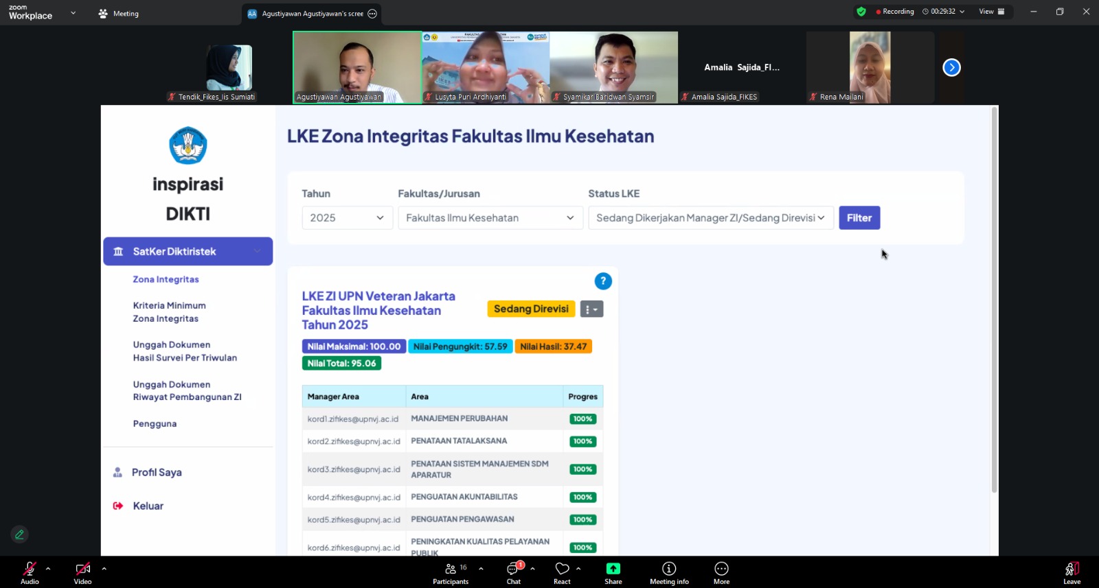 FIKES UPNVJ – Fakultas Ilmu Kesehatan (FIKES) Universitas Pembangunan Nasional “Veteran” Jakarta terus menunjukkan komitmennya dalam mewujudkan tata kelola perguruan tinggi yang bersih, transparan, dan akuntabel melalui pelaksanaan Program Zona Integritas (ZI). Program ini merupakan bagian dari upaya strategis fakultas dalam mendukung reformasi birokrasi dan pembangunan budaya kerja yang berorientasi pada pelayanan prima bagi sivitas akademika dan masyarakat.