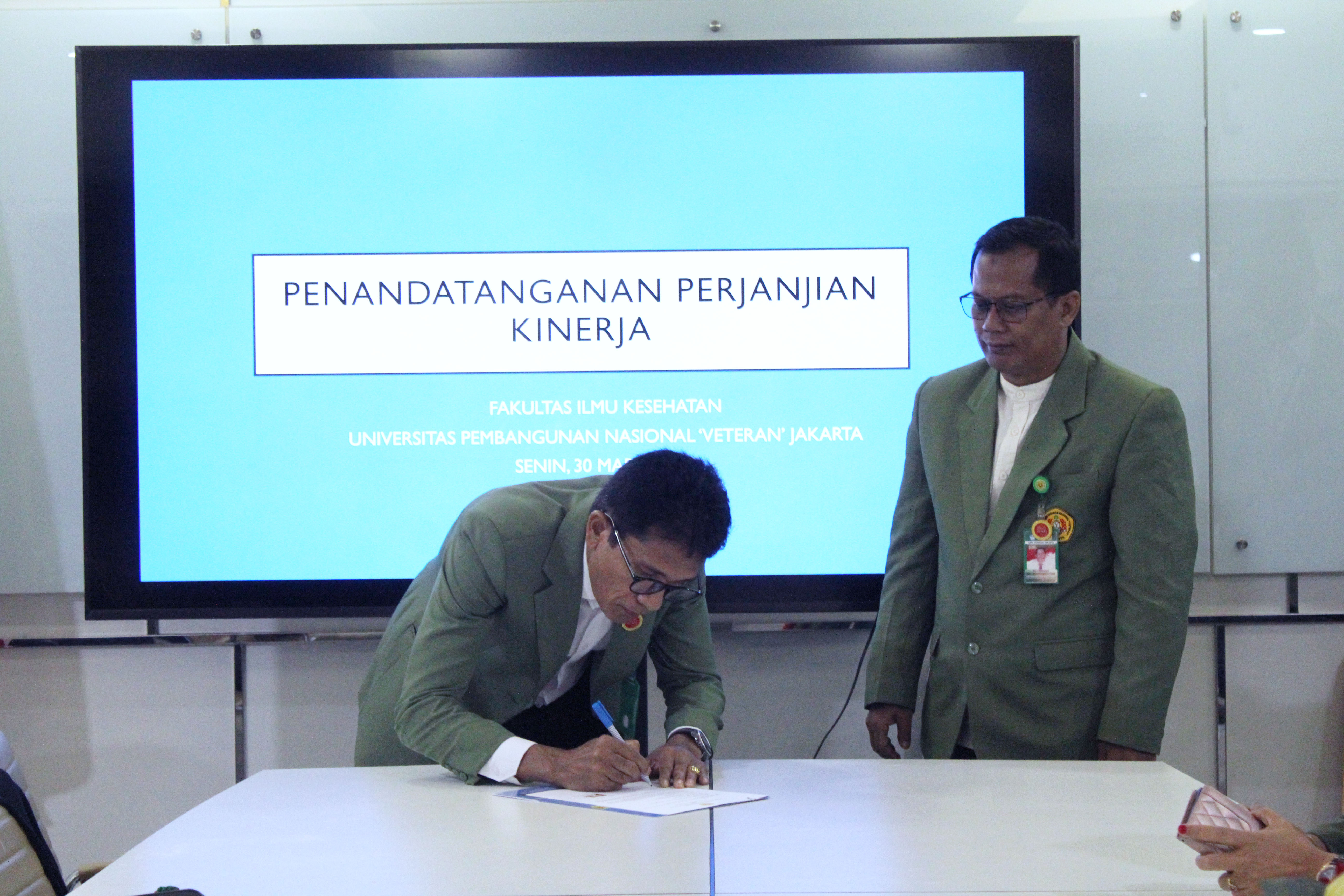 FIKES UPNVJ, 30 Maret 2026 – Fakultas Ilmu Kesehatan (FIKES) Universitas Pembangunan Nasional “Veteran” Jakarta (UPNVJ) melaksanakan penandatanganan perjanjian kinerja sebagai upaya memperkuat akuntabilitas dan tata kelola institusi, Senin (30/3), di lingkungan kampus UPNVJ. Kegiatan ini melibatkan pimpinan fakultas dan unit kerja sebagai bentuk komitmen terhadap pencapaian target kinerja tahun 2026. Penandatanganan dilakukan secara langsung dan disaksikan oleh jajaran pimpinan sebagai bagian dari implementasi reformasi birokrasi dan zona integritas. Langkah ini dinilai penting untuk memastikan setiap program kerja berjalan efektif, terukur, dan selaras dengan visi universitas.