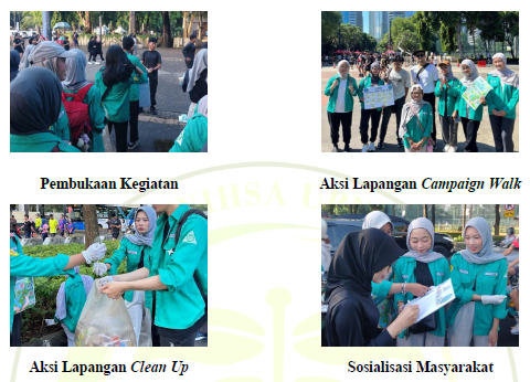 Selanjutnya, peserta dibagi ke dalam beberapa kelompok untuk melaksanakan kegiatan clean up sebagai aksi nyata menjaga kebersihan lingkungan di kawasan Car Free Day. Selain itu, dilakukan pula campaign walk dengan menyampaikan pesan-pesan edukatif kepada masyarakat mengenai pentingnya perilaku ramah lingkungan, seperti pengurangan sampah plastik dan menjaga kebersihan ruang publik.