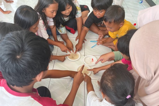 Selanjutnya, peserta mengisi post-test sebagai evaluasi peningkatan pemahaman setelah menerima materi. Kegiatan ditutup dengan sesi kreativitas yang mendorong ekspresi anak, pembagian hadiah sebagai bentuk apresiasi, serta foto bersama sebagai dokumentasi akhir kegiatan.