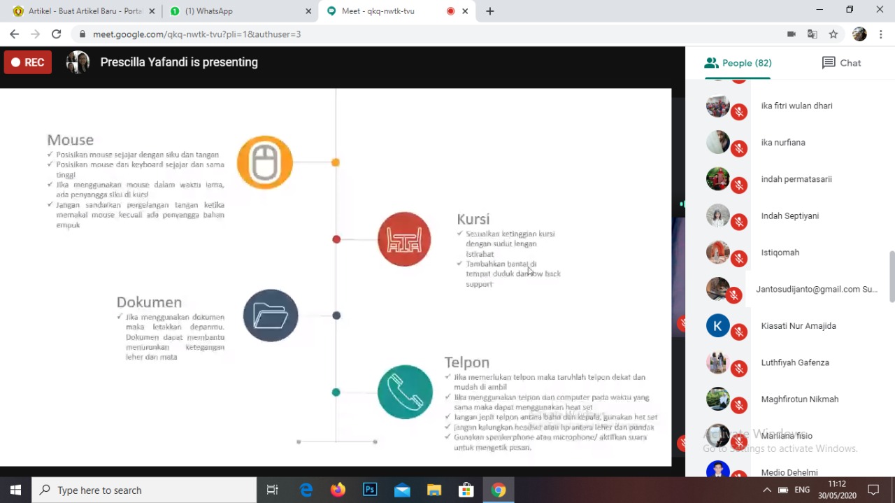 FIKES UPNVJ – Pada hari Sabtu, tanggal 30 Mei 2020 telah dilaksanakan Kegiatan Webinar PT 1 Optimalisasi WFH di Kala Pandemi Covid – 19 "Mengoptimalkan Masa Kerja di Rumah Selama Pandemi" dan di acara dimulai dengan panitia membacakan Tata Tertib Webinar, Kemudian acara diserahkan oleh moderator Eko Prabowo, S.Fis, M.Fis. Membacakan Curiculum Vitae Pembicara. Peserta yang hadir terdiri dari 83.