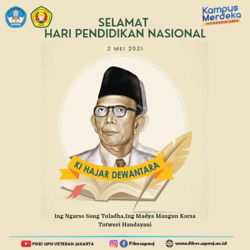 FIKES UPNVJ –  Dekan dan Segenap Civitas Akademik Fakultas Ilmu Kesehatan Universitas Pembangunan Nasional Veteran Jakarta Mengucapkan Selamat Hari Pendidikan Nasional 2 Mei 2021 "Serentak Bergera, Wujudkan Merdeka Belajar" (Ing Ngarso Sung Tuladha, Ing Madya Mangun Karsa Tutwuri Handayani-Ki Hajar Dewantara)