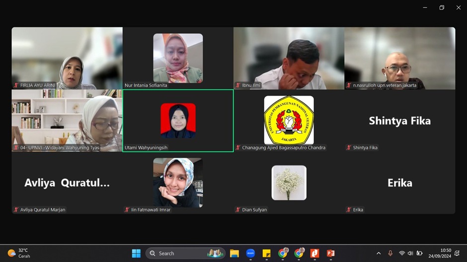 FIKES UPNVJ – Pada hari Selasa 24 September 2024 pukul 10.00 WIB telah dilaksanakan Rapat Tinjauan Manajemen Program Studi Gizi Program Sarjana FIKES UPN "Veteran"Jakarta secara daring di. Rapat Tinjauan Manajemen dihadiri oleh Koordinator Program Studi Gizi Program Sarjana, Sekretaris Program Studi Gizi Program Sarjana, Kepala Laboratorium Program Studi Gizi Program Sarjana, Dosen Program Studi Gizi Program Sarjana, serta staff laboratorium dan staff administrasi. RTM Program Studi Gizi Program Sarjana dibuka oleh Koordinator Program Studi Gizi Program Sarjana, dan kali ini mendiskusikan terkait persiapan visitasi Re-Akreditasi LAMPTKES Program Studi Gizi Program Sarjana. Hal-hal yang diskusikan terkait ini adalah dokumen-dokumen bukti dan juga bagaimana kesiapan terkait dengan sarana serta prasarana seperti laboratorium. Assessment lapangan akan dilakukan setelah assessment kecukupan selesai dilakukan, untuk waktunya masih belum terjadwal dari pihak LAMPTKES.