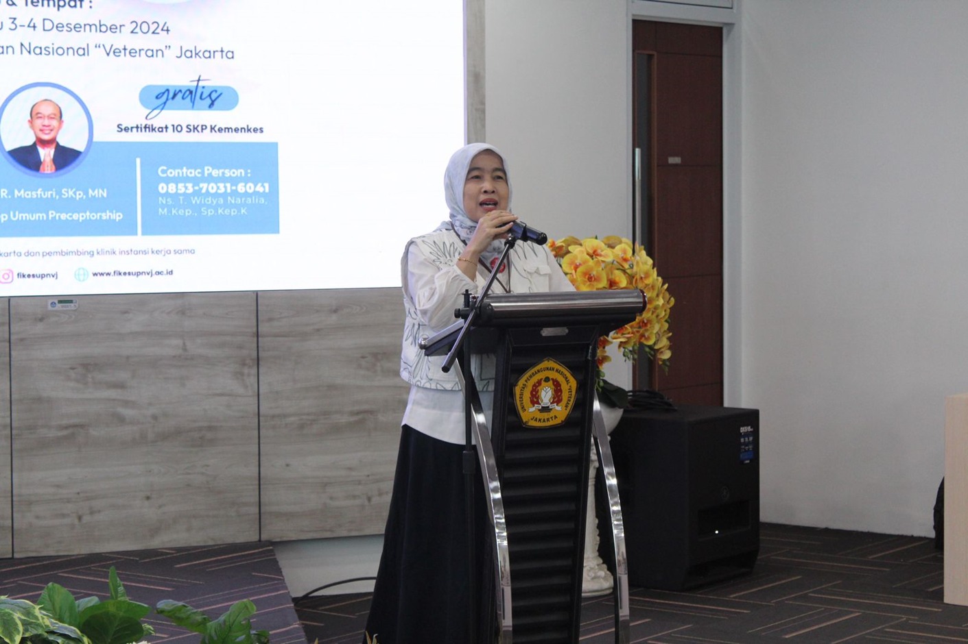 FIKES UPNVJ – Selasa, 3 Desember 2024, bertempat di Auditorium Gedung MerCe lantai 8 dan Laboratorium Keperawatan, Fakultas Ilmu Kesehatan (FIKES), Universitas Pembangunan Nasional “Veteran” Jakarta (UPNVJ), sebanyak 52 peserta eksternal dan 32 peserta internal menghadiri pelatihan preceptorship keperawatan dengan narasumber yaitu Dr. Masfuri, S.Kp., MN dan Ns. Erna Puspita Sari, S.Kep., M.Kep., Sp.Kep.M. Peserta eksternal merupakan perawat pembimbing klinik dari berbagai rumah sakit atau fasilitas kesehatan seperti RSUD Depok, RSPAD Gatot Soebroto, RSUD Pasar Minggu, RSUD Pasar Rebo, RSUD Cengkareng, RSUD Bekasi, RSUD Tarakan, RSAL Mintoharjo, RS Soeyoto, RS Marinir Cilandak, RS POLRI, RS Soeharto Herdjan, AGD Dinkes, PSTW Budi Mulya 1 Cipayung dan PSTW Budi Mulya 4 Ciracas. Peserta internal merupakan dosen keperawatan dari berbagai spesialisasi keilmuan seperti managemen keperawatan dan keperawatan dasar, keperawatan medikal bedah, keperawatan kritis dan gawat darurat, keperawatan anak, keperawatan komunitas, keperawatan maternitas dan keperawatan jiwa.