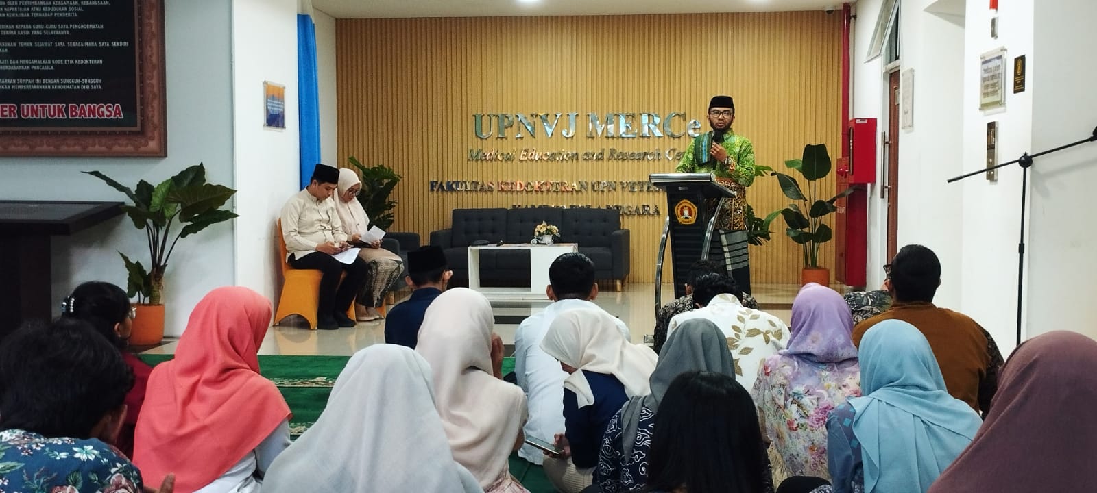 FIKES UPNVJ – Jakarta, 14 Maret 2025 Fakultas Ilmu Kesehatan Universitas Pembangunan Nasional “Veteran” Jakarta menggelar acara buka puasa bersama yang dihadiri oleh seluruh sivitas akademika, termasuk dosen, mahasiswa, dan staf dengan bertema "Kemampuan Non Teknis Peningkatan Kompetensi Kerohanian Dosen dan Tendik FIKES UPNVJ". Acara ini bertujuan untuk mempererat tali silaturahmi dan menciptakan suasana kebersamaan di bulan suci Ramadhan. Dengan tema "Kebersamaan dalam Keberkahan", kegiatan ini diharapkan dapat meningkatkan rasa solidaritas di antara anggota fakultas.