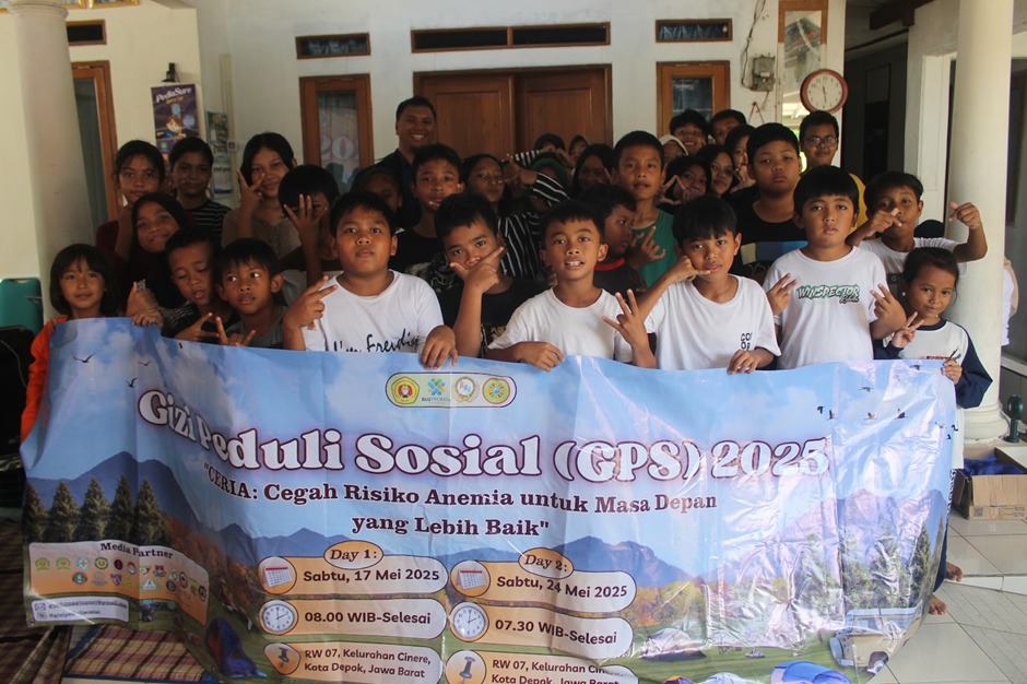 FIKES UPNVJ – Depok, 24 Mei 2025 – Dengan rasa bangga, Himpunan Mahasiswa Gizi (HIMAGI) Program Studi Gizi Program Sarjana Fakultas Ilmu Kesehatan Universitas Pembangunan Nasional “Veteran” Jakarta telah berhasil melaksanakan kegiatan Gizi Peduli Sosial (GPS) 2025 pertemuan kedua pada tanggal 24 Mei 2025 di RW 07, Kelurahan Cinere, Kota Depok, Jawa Barat. Gizi Peduli Sosial (GPS) 2025 merupakan program kerja dari Divisi Sosial dengan kegiatan berupa pengabdian masyarakat, yaitu pemberian edukasi terkait permasalahan gizi dan kesehatan dengan tema “CERIA: Cegah Risiko Anemia untuk Masa Depan yang Lebih Baik”.